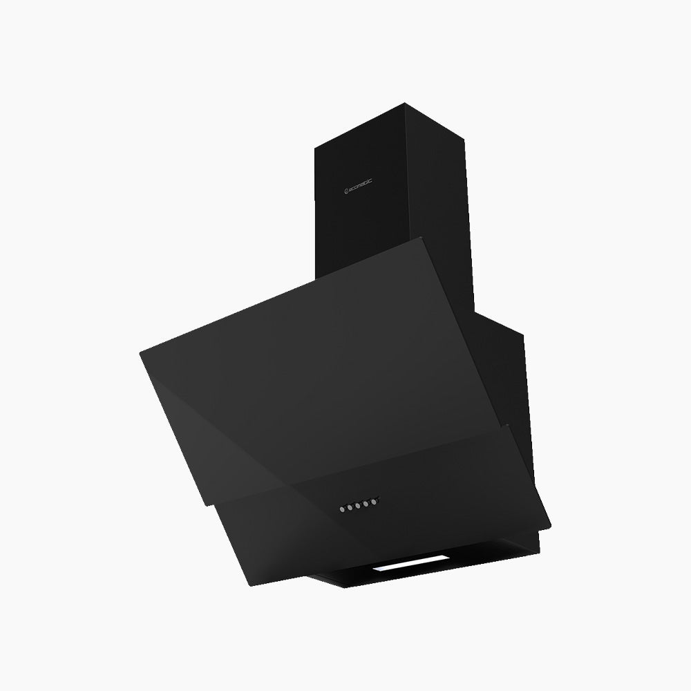 شفاط إيكوماتيك 60 سم DECORATIVE مائل - كريستال أسود - موتور إيطالي 3 سرعات قوة 650م / الساعة - فلاتر معدنية سهلة التنظيف - إضاءة LED - فلاتر كربون - إمكانية التشغيل بالطرد الداخلي (فلاتر كربون أو بالطرد الخارجي (مدخنة).