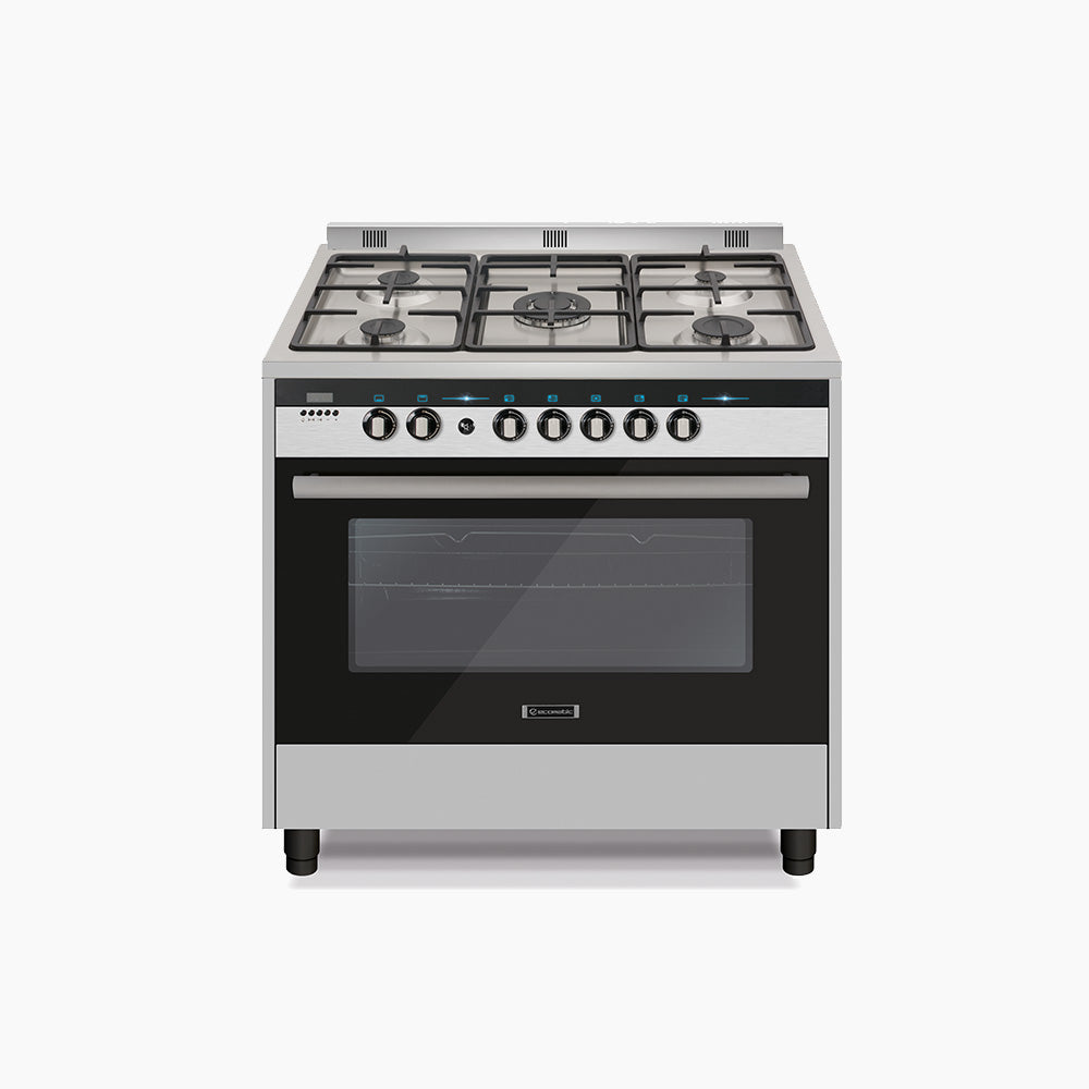 المسطح إستانلس ستيل 90 سم 5 شعلة غاز - إشعال ذاتي - أمان كامل إيطالي -حوامل زهر - شعلة ثلاثية SABAF إيطالي.