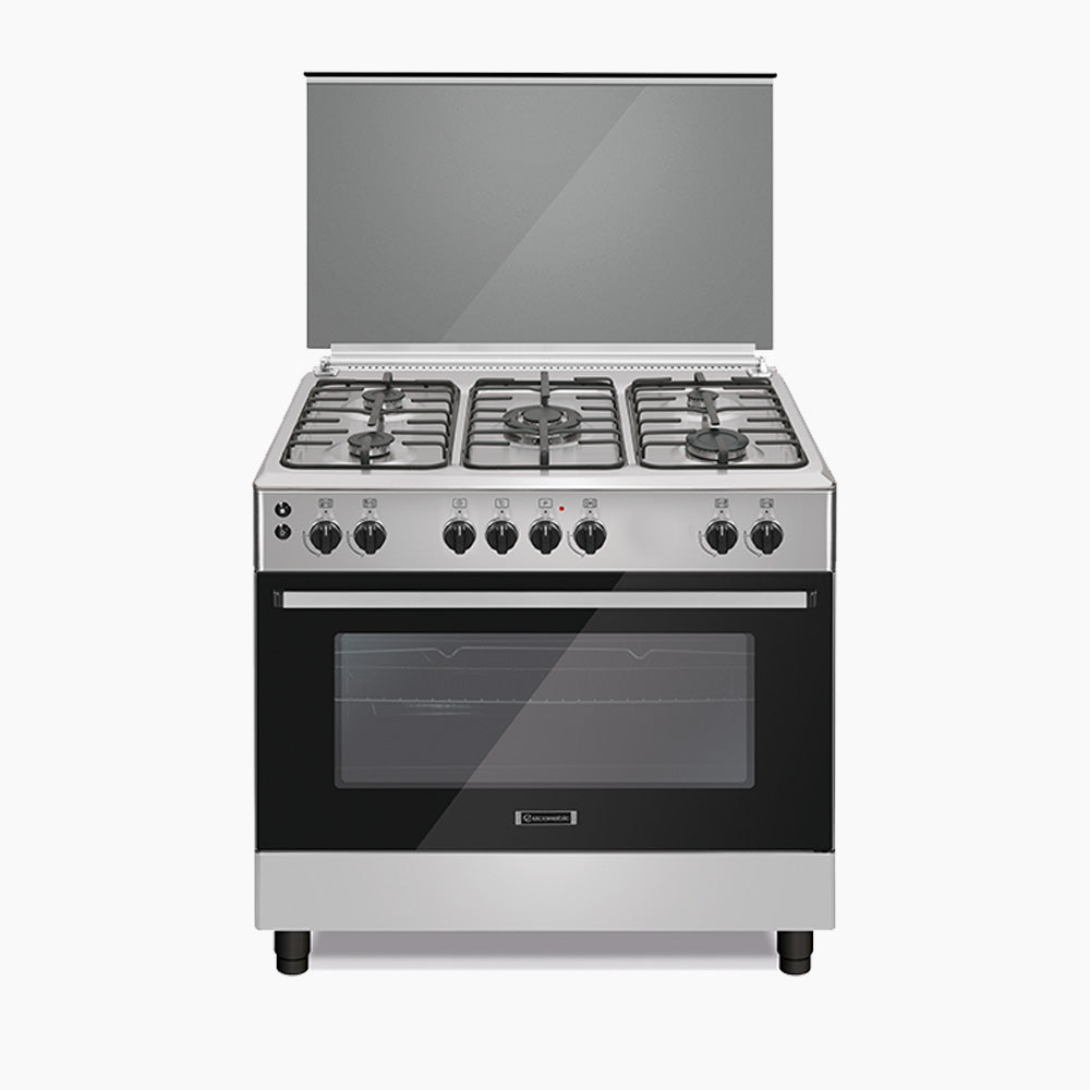 بوتجاز ايكوماتيك 90 سم غاز شواية غاز -سطح ولوحة تحكم إستانلس ستيل بالمروحة مروحة توزيع).المسطح: إستانلس ستيل 90 سم 5 شعلة غاز - إشعال ذاتي - أمان كامل إيطالي -حوامل مط زهر عريضه - شعلة ثلاثيةSABAF إيطالي - غطاء زجاجي.الفرن 90 سم غاز شواية غاز - مروحة توزيع الحرارة بنظام الكونفكشن - 5وظائف - تايمر تنبيه - 2 لمبة إضاءة داخلية - حامل أرفف إستانلس 4 مستويات - 2 موتور شواية + 2 سيخ شوى - أمان كامل إيطالي - إشعال ذاتي - مروحة تبريد حراري - أرجل البوتجاز قابلة لضبط الإرتفاع -المروحة تعمل مع الفرن أو الشواية -خاصية DEFROST للفرن لفك المجمدات عن طريق الهواء الفاتر - 2 مفتاح للفرن و الشواية الفرن والشواية يعملان معا) -الشواية تعمل والباب مغلق - الوحيد المزود ب 2 مدخل غاز لسهولة التركيب - أكبر سعة لترية XXL - تجويف مسطح للفرن سهل التنظيف - جوانب سلفر - زجاج باب الفرن مصنع ب SCHOTT بألمانيا - الزجاج الداخلي لباب الفرن قابل للفك وسهل التنظيف.
