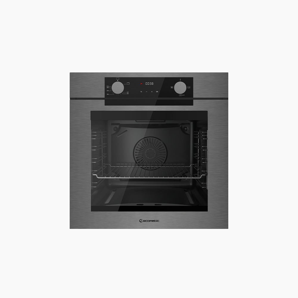 فرن إيكوماتك بلت إن غاز 60 سم استانلس ستيل غامق يجمع بين الأداء الإيطالي الموثوق والتكنولوجيا الحديثة لتجربة طهي صحية وسهلة. يتميز بتحكم ديجيتال تاتش ومروحة توزيع الحرارة لضمان نتائج مثالية مع أقصى درجات الأمان.