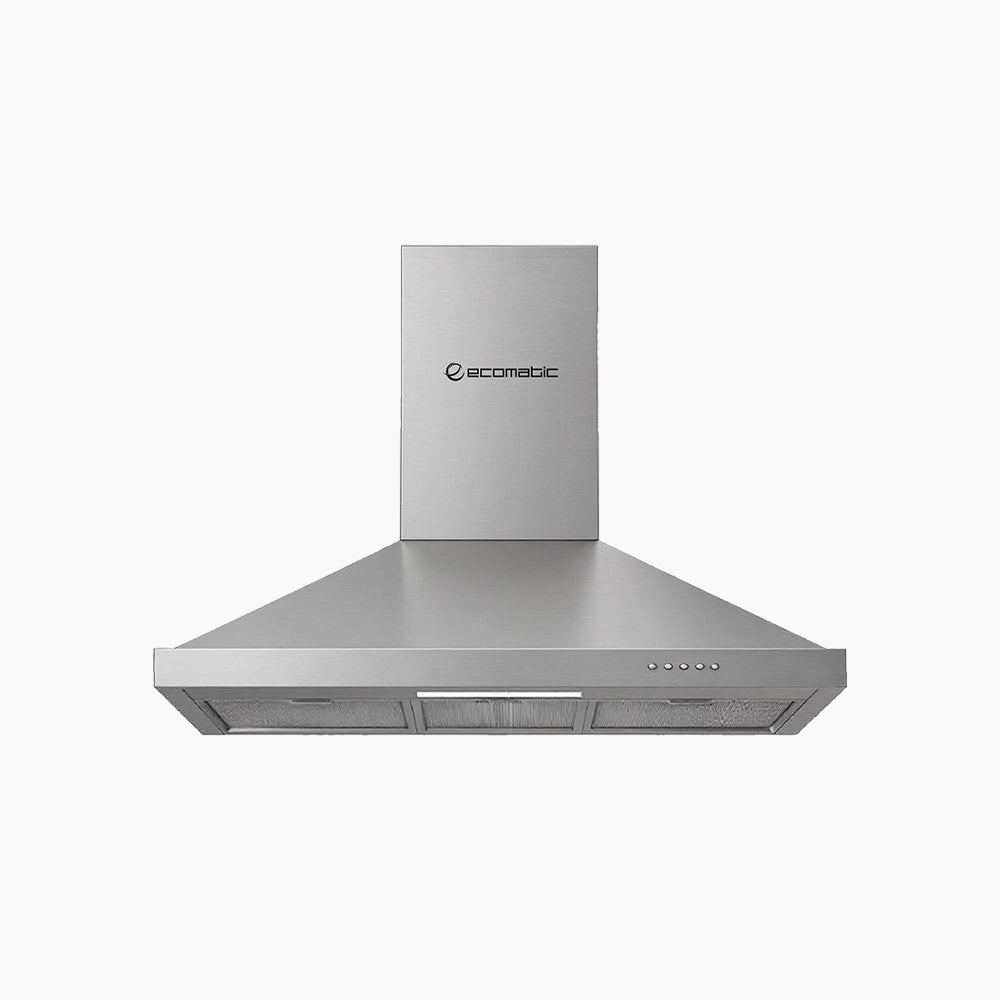 جديد - شفاط إيكوماتيك 90 سم هرمى استانلس ستيل - 3 سرعات قوة 1000م / الساعة - فلاتر معدنيه سهلة التنظيف - فلاتر كربون - إضاءة LED -إمكانية التشغيل بالطرد الداخلي (فلاتر كربون أو بالطرد الخارجي (مدخنه).