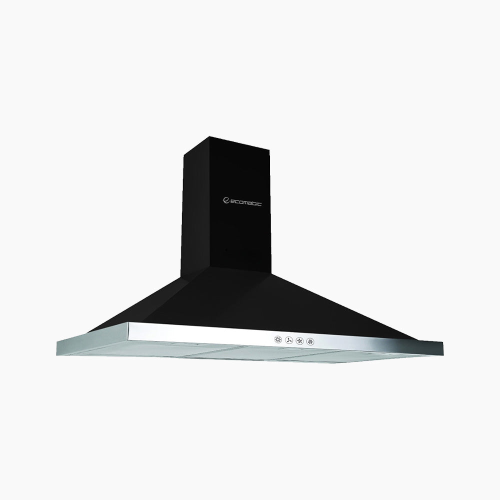 شفاط إيكوماتيك 90 سم هرمي أسود بقريم استانلس تاتش TOUCH - 3 سرعات قوة 650م / الساعة - تايمر إغلاق اوتوماتيك -فلاتر معدنيه سهلة التنظيف - إضاءة LED فلاتر كربون - إمكانيه التشغيل بالطرد الداخلي (فلاتر كربون أو بالطرد الخارجي (مدخنه).