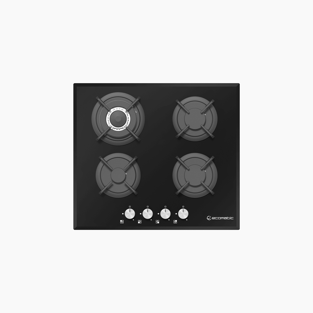 مسطح إيكوماتك 60 سم Ronda بتصميم كريستال أسود بالكامل، يدي مطبخك لمسة فاخرة وعصرية. مزوّد بـ 4 شعلات SABAF إيطالية عالية الكفاءة، منها شعلة ثلاثية كبيرة بقدرة 3.8KW تمنحك حرارة قوية ومركّزة للطهي السريع والدقيق. السطح مصنوع من زجاج SCHOTT الألماني المعروف بقوة تحمّله ومقاومته للحرارة.
