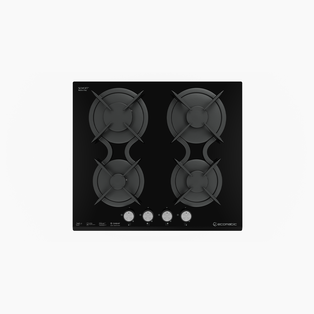 مسطح إيكوماتك 60 سم بتصميم INFINITY الفريد وكريستال أسود بالكامل يضيف لمطبخك لمسة فاخرة ومختلفة. مزوّد بـ 4 شعلات SABAF الإيطالية عالية الكفاءة، مع إشعال أوتوماتيك ونظام أمان كامل إيطالي. الزجاج الألماني SCHOTT المزدوج بسمك 8 مم يمنحك قوة تحمل أعلى ومظهر راقٍ يدوم.