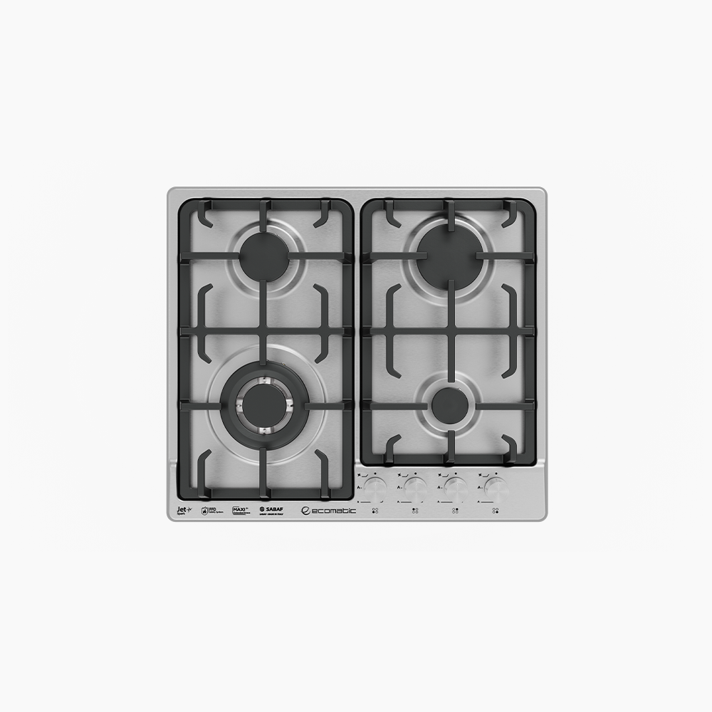 مسطح إيكوماتك S633C بتصميم ستانلس ستيل متين وعصري، مناسب لكل مطبخ وعملي للاستخدام اليومي. مزوّد بـ 4 شعلات SABAF إيطالية عالية الجودة، منها شعلة ثلاثية جانبية كبيرة بقدرة 3.8KW تمنحك راحة أكبر أثناء الطهي، خاصة لو بتستخدمي أواني كبيرة. بالإضافة إلى إشعال أوتوماتيك ونظام أمان كامل إيطالي.