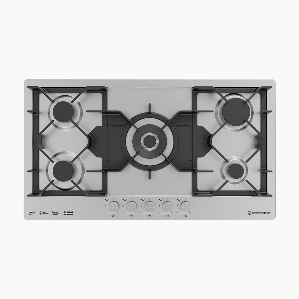 مسطح إيكوماتك بلت إن غاز 92 سم بتصميم ستانلس ستيل أنيق، مزوّد بـ 5 شعلات XL تمنحك مساحة مريحة وحرارة قوية لكل وصفاتك. أداء إيطالي عالي الجودة بلمسة عصرية ولمعان يدوم لسنوات.