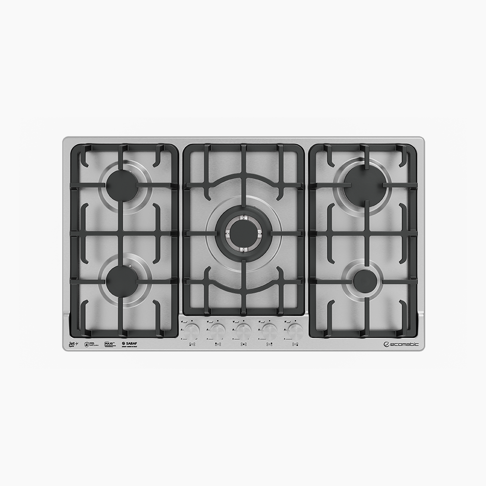مسطح إيكوماتك بلت إن غاز 90 سم بتصميم عصري من الستانلس ستيل، مزوّد بـ 5 شعلات قوية لتمنحك تجربة طهي عملية وسريعة. يجمع بين الأداء الإيطالي الموثوق والتصميم الأنيق المناسب لكل مطبخ حديث.