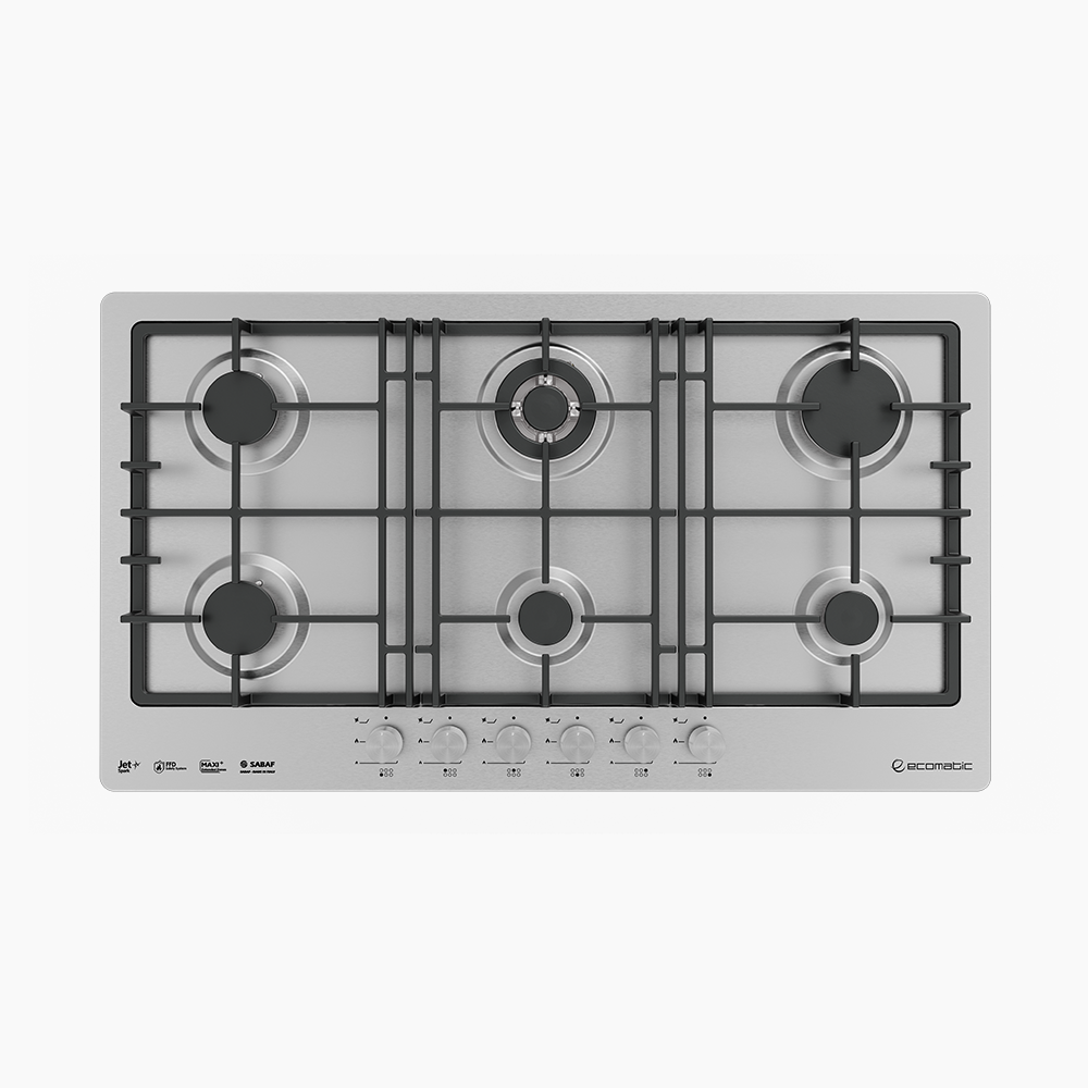 مسطح إيكوماتك بلت إن غاز 92 سم بتصميم راقٍ من الستانلس ستيل، مزوّد بـ 6 شعلات XL تمنحك حرية كاملة في الطهي ومساحة واسعة لتحضير أكثر من وصفة في وقت واحد. تصميم عملي وأداء إيطالي يضمنلك تجربة طهي مريحة وسريعة.