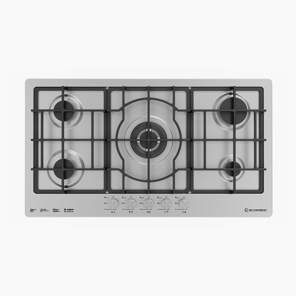 مسطح إيكوماتك بلت إن غاز 92 سم بتصميم أنيق من الستانلس ستيل، مزوّد بـ 5 شعلات XL تمنحك راحة في الطهي ومساحة واسعة لتحضير وجبات متعددة. يجمع بين الأداء الإيطالي الموثوق والمظهر العصري اللامع.