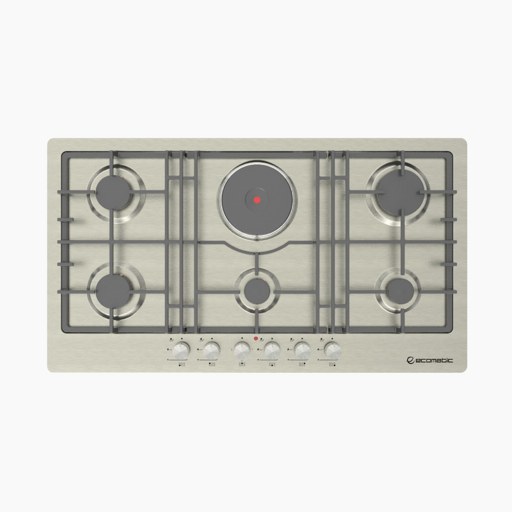 مسطح إيكوماتك بلت إن غاز 92 سم بتصميم ستانلس ستيل أنيق ومتكامل مع عين كهرباء إضافية لتجربة طهي مرنة تجمع بين الغاز والكهرباء. أداء عالي، مساحة واسعة، وضمان جودة أوروبية بتفاصيل دقيقة.